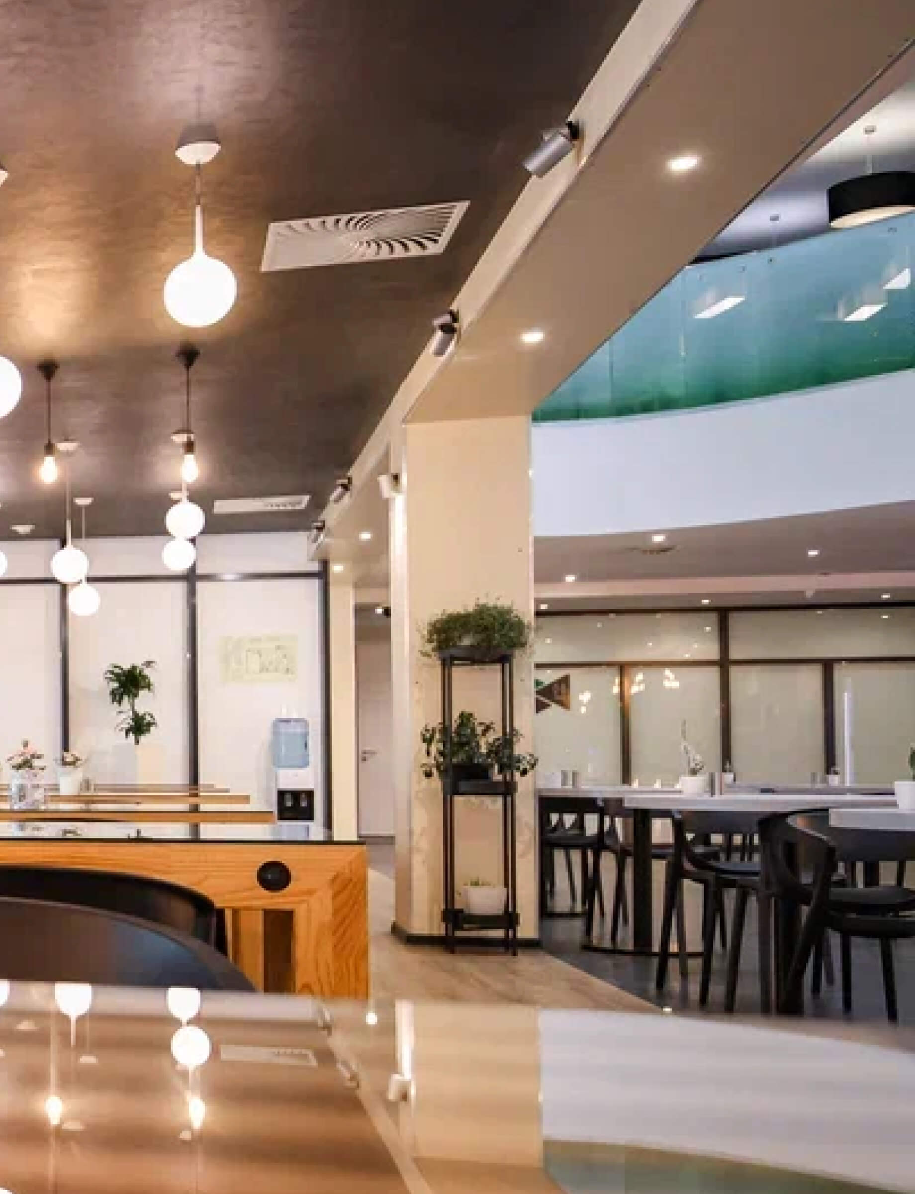 Современная столовая с большим выбором блюд на завтрак, обед и ужин